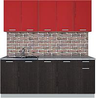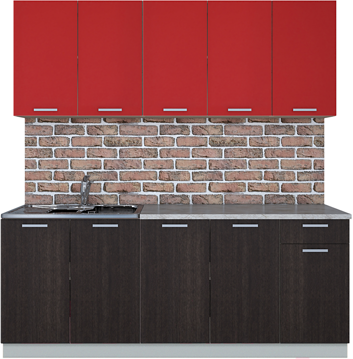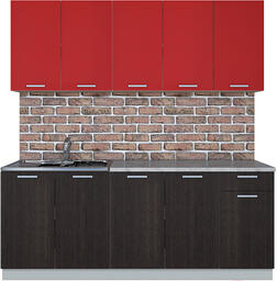 Готовая кухня Интерлиния Мила Лайт 2.0 (красный/дуб венге); Длина кухни: 200 см; Конструкция кухни: линейная; Материал фасада: ЛДСП; Столешница: отдельная на каждый шкаф; Ширина шкафа под мойку: 80 см; Материал каркаса: ЛДСП; Установка мойки: накладная мойка; Ширина кухни: 60 см; Тип фасада: прямой