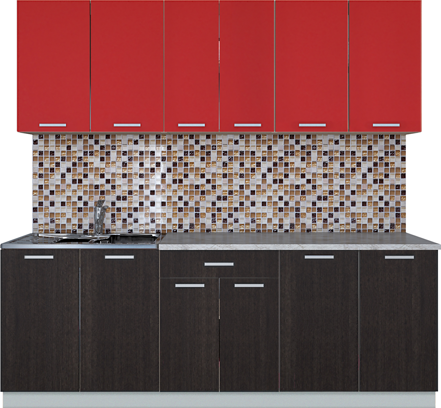 Готовая кухня Интерлиния Мила Лайт 2.2 (красный/дуб венге); Длина кухни: 220 см; Конструкция кухни: линейная; Материал фасада: ЛДСП; Столешница: отдельная на каждый шкаф; Ширина шкафа под мойку: 80 см; Материал каркаса: ЛДСП; Установка мойки: накладная мойка; Ширина кухни: 60 см; Тип фасада: прямой