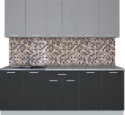 Готовая кухня Интерлиния Мила Лайт 2.2 (серебро/антрацит); Длина кухни: 220 см; Конструкция кухни: линейная; Материал фасада: ЛДСП; Столешница: отдельная на каждый шкаф; Ширина шкафа под мойку: 80 см; Материал каркаса: ЛДСП; Установка мойки: накладная мойка; Ширина кухни: 60 см; Тип фасада: прямой