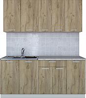 Готовая кухня Интерлиния Мила Лайт 1.8 (дуб золотой); Длина кухни: 180 см; Конструкция кухни: линейная; Материал фасада: ЛДСП; Столешница: отдельная на каждый шкаф; Ширина шкафа под мойку: 80 см; Материал каркаса: ЛДСП; Установка мойки: накладная мойка; Ширина кухни: 60 см; Тип фасада: прямой