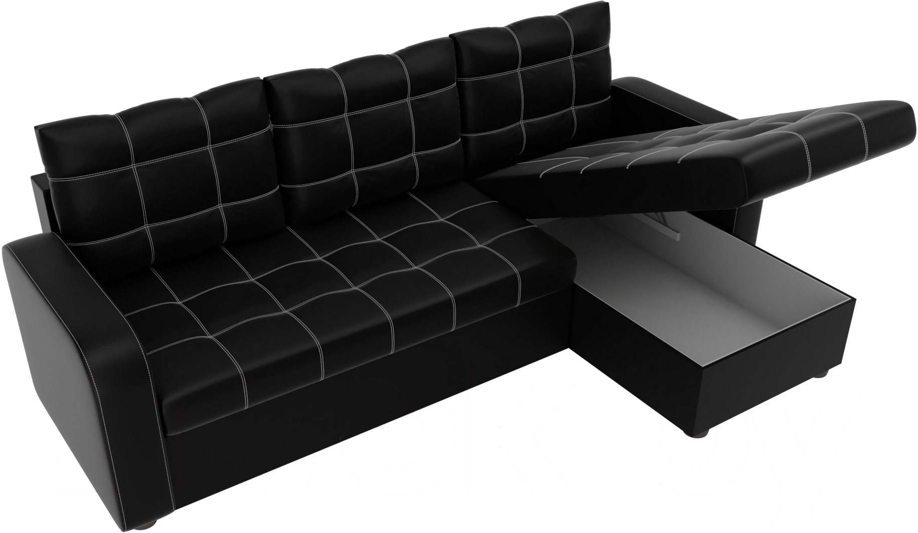 Диван угловой Ливерпуль 478 правый / 59614 (экокожа, черный)