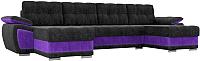 Диван П-образный Нэстор П 118 / 60754 (велюр, черный/фиолетовый)