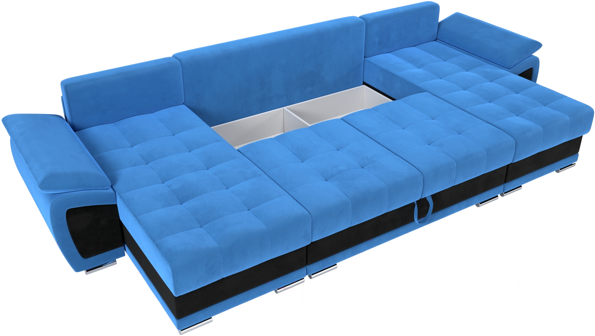 Диван П-образный Нэстор П 118 / 60751 (велюр, голубой/черный)