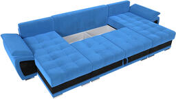 Диван П-образный Лига Диванов Нэстор П 118 / 60751 (велюр, голубой/черный); Длина: 353 см; Механизм трансформации: тик-так (пантограф); Настил: "змейка"; Обивка: ткань; Глубина: 160 см; Высота: 95 см; Ширина спального места: 125 см