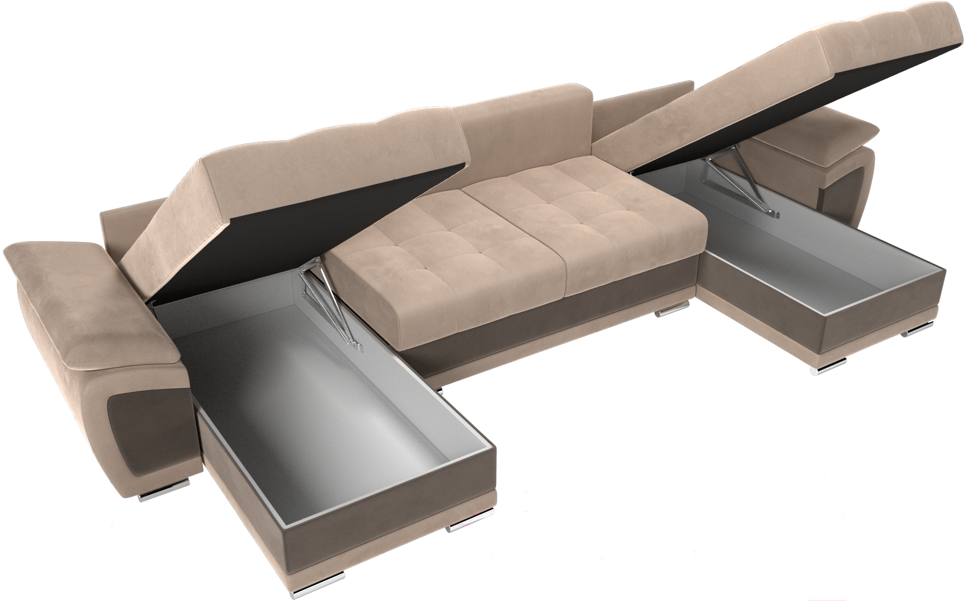 Диван П-образный Нэстор П 118 / 60750 (велюр, бежевый/коричневый)