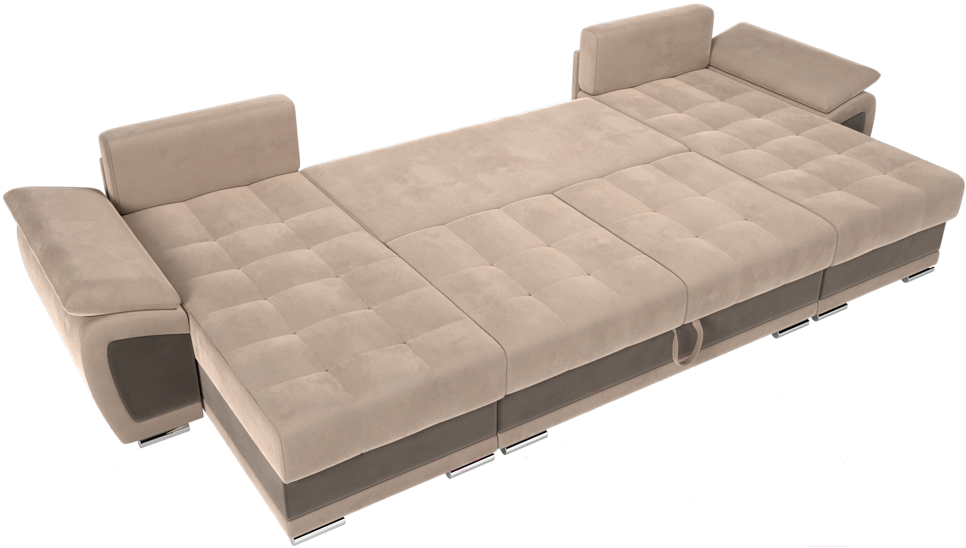 Диван П-образный Лига Диванов Нэстор П 118 / 60750 (велюр, бежевый/коричневый); Длина: 353 см; Механизм трансформации: тик-так (пантограф); Настил: "змейка"; Обивка: ткань; Глубина: 160 см; Высота: 95 см; Ширина спального места: 125 см