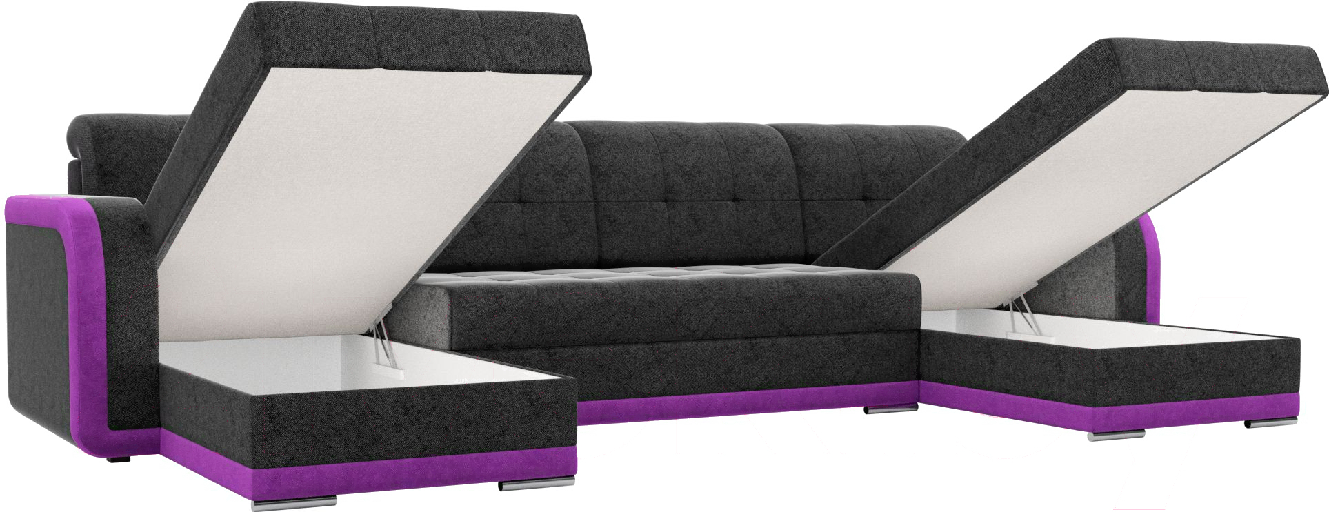 Диван П-образный Марсель П 121 / 60535 (велюр, черный/фиолетовый)