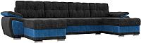 Диван П-образный Нэстор П 118 / 60753 (велюр, черный/голубой)