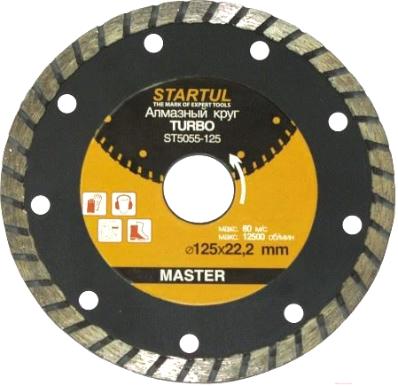 Отрезной диск алмазный Startul ST5055-230; Особенность резки: сухая; Обрабатываемый материал: бетон, кирпич, камень; Диаметр диска, мм: 230; Посадочный диаметр, мм: 22
