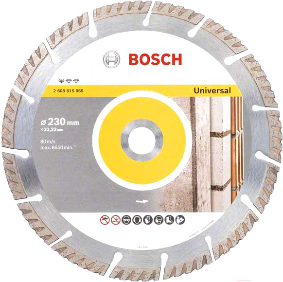 Отрезной диск алмазный Bosch 2.608.615.065; Обрабатываемый материал: бетон, кирпич; Диаметр диска, мм: 230; Посадочный диаметр, мм: 22.23
