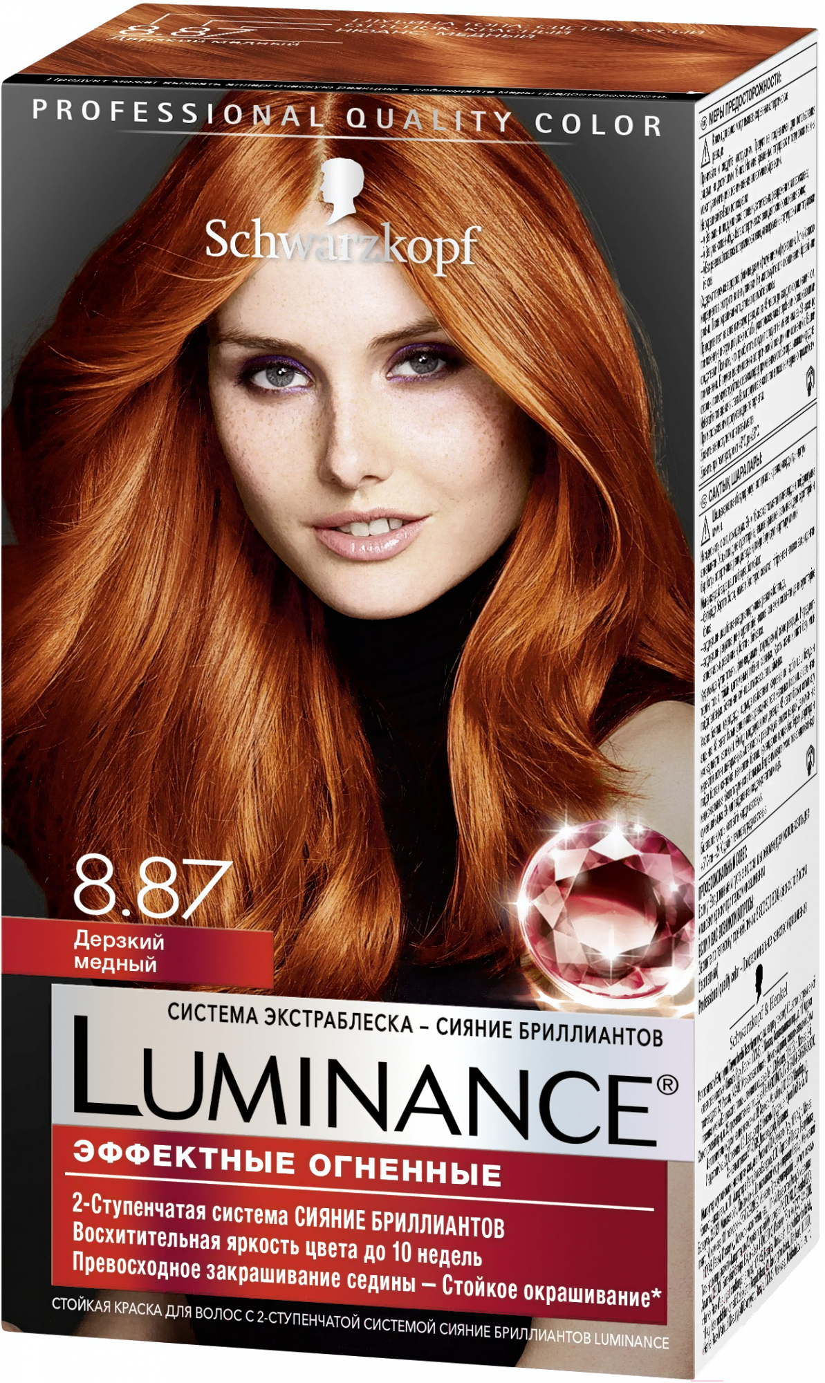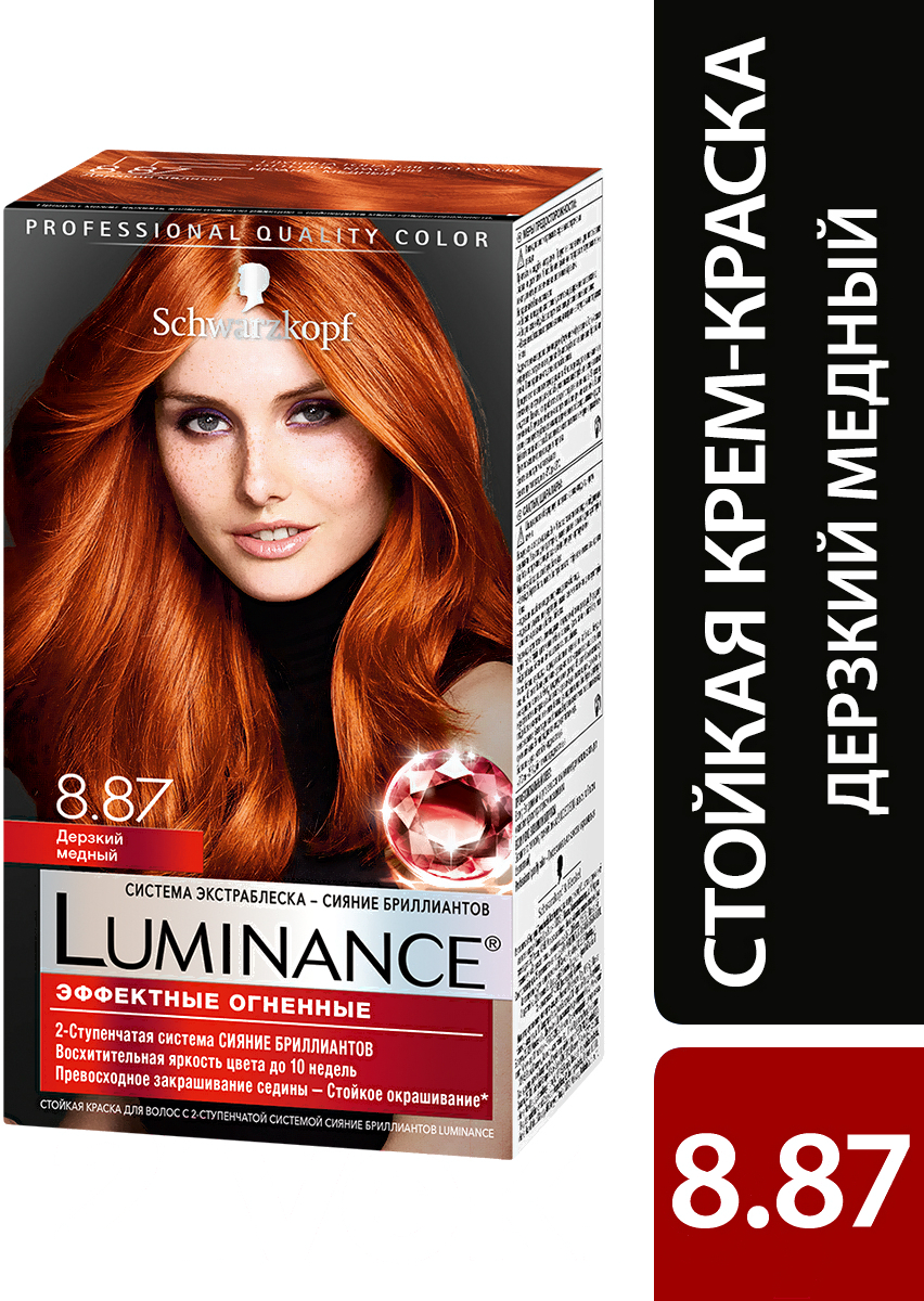 Крем-краска для волос Luminance Стойкая 8.87 (дерзкий медный); Цвет: рыжий; Оттенок: 8.87 Дерзкий медный; Объем: 60 мл; Степень окрашивания: перманент; Закрашивание седины: есть; Применение: бытовое