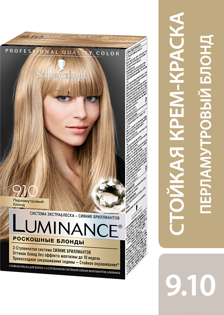 Крем-краска для волос Luminance Стойкая 9.10 (перламутровый блонд); Цвет: блонд; Оттенок: 9.10 Перламутровый блонд; Объем: 60 мл; Степень окрашивания: перманент; Закрашивание седины: есть; Применение: бытовое