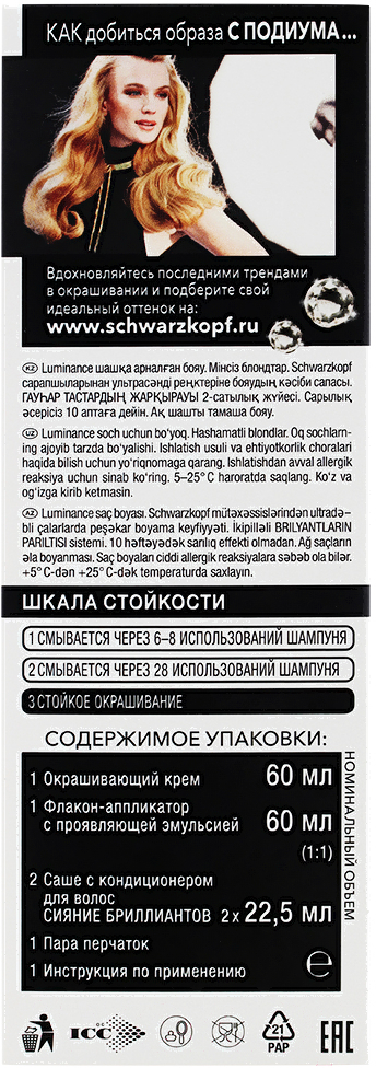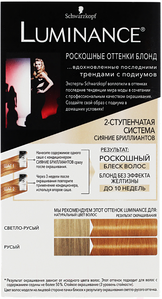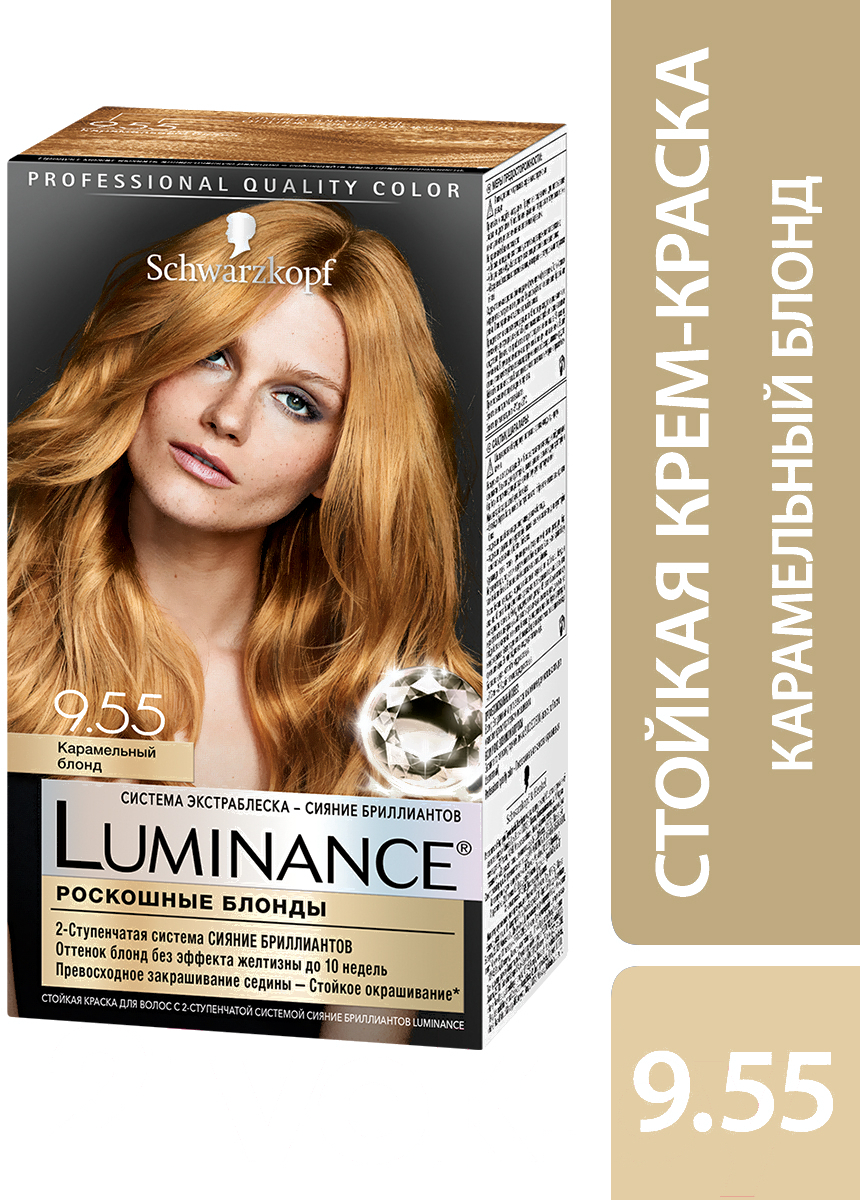 Крем-краска для волос Luminance Стойкая 9.55 (карамельный блонд); Цвет: блонд, рыжий; Оттенок: 9.55 Карамельный блонд; Объем: 60 мл; Степень окрашивания: перманент; Закрашивание седины: есть; Применение: бытовое