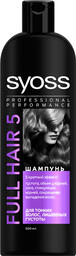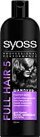 Шампунь для волос Syoss Full Hair 5 для тонких лишенных объема волос (500мл); Действие: очищающее, укрепляющее, против выпадения волос, стимуляция роста волос, придание объема; Тип волос: тонкие, склонные к выпадению; Пол: для женщин; Объем: 500 мл