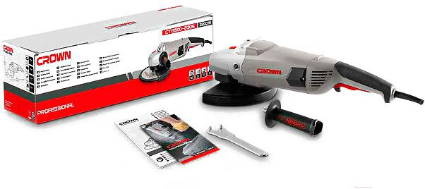 Угловая шлифовальная машина CROWN CT13500-230S; Частота вращения на холостом ходу: 6500;6500 об/мин; Диаметр диска/шлифкруга: 230 мм; Тип: угловая шлифовальная машина; Тип питания: сеть; Напряжение сети: 220 В; Дополнительные функции: фиксация шпинделя; В комплекте: дополнительная рукоятка, защитный кожух, ключ