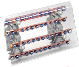 Распределительный блок на DIN-рейку КС РБ-400А (шинный); Материал: сталь, латунь, полиамид; Номинальный ток: 400 А; Длина: 275 мм