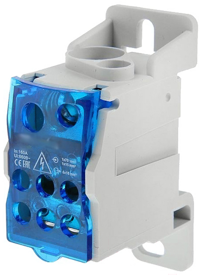 Распределительный блок на DIN-рейку КС РБ-125А; Материал: полиамид; Номинальный ток: 125 А; Длина: 74 мм