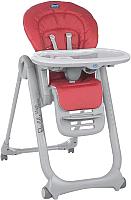 Стульчик для кормления Chicco Polly Magic Relax (scarlet); Материал каркаса: пластик, металл; Столик: съемный; Паховый разделитель: есть; Возможности регулировки: высота подножки, высота сиденья, наклон спинки, расстояние от столика до спинки; Трансформация: 2-в-1; Виды трансформации: стульчик, шезлонг