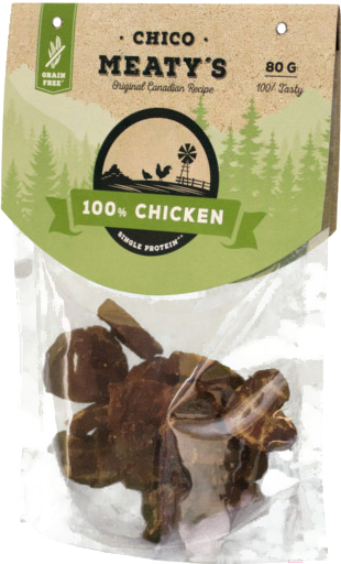 Лакомство для собак Chicopee Chico Meaty’s Chick (80г); Размер собаки: мелкие породы, средние породы, крупные породы; Форма лакомства: цельное сушеное (мясо/субпродукты); Вкус: курица; Вес: 80 г