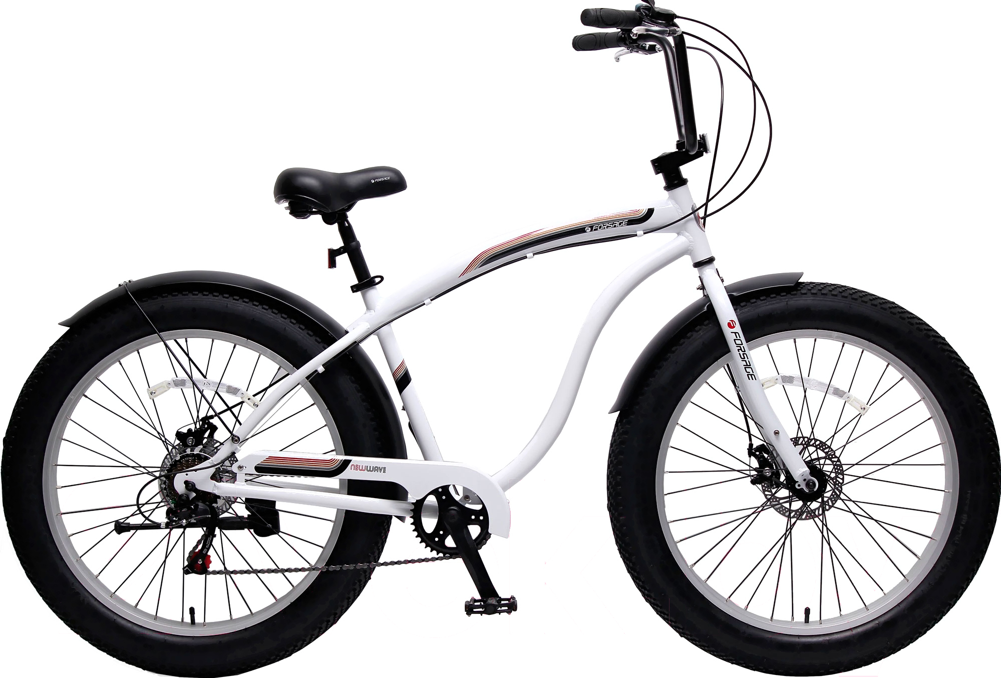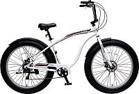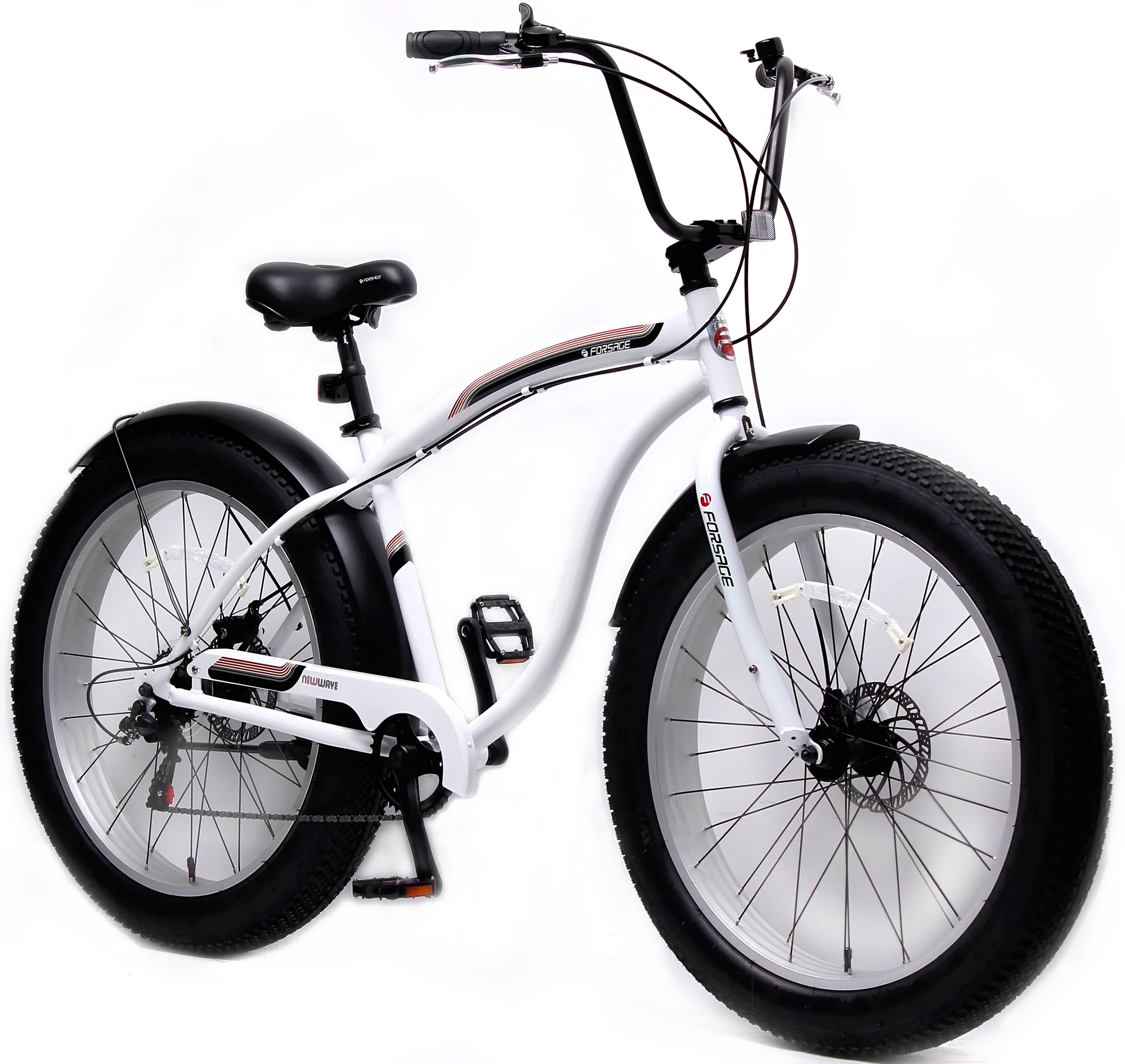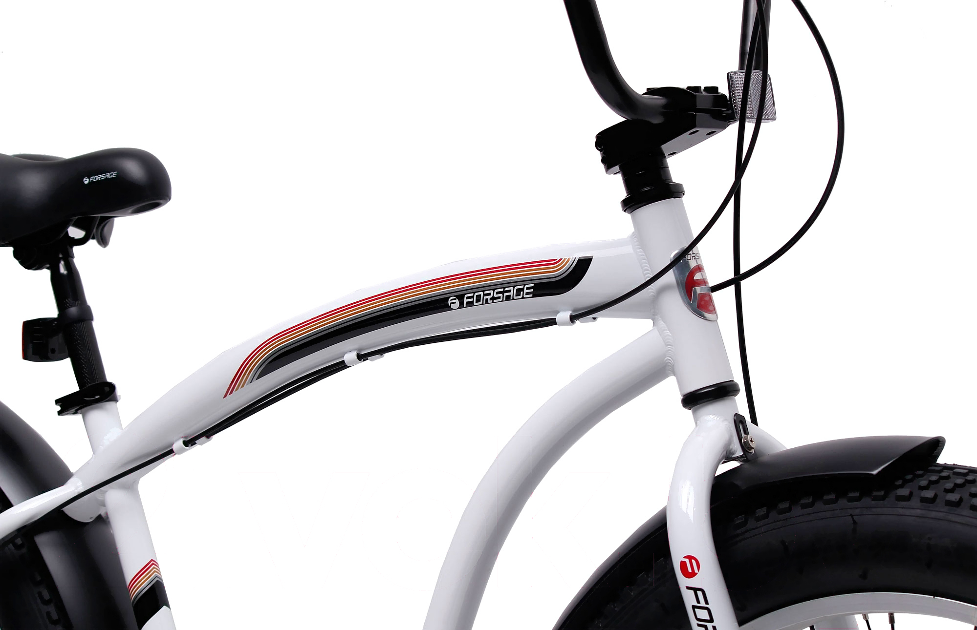 Велосипед Forsage Фэтбайк FB26001 (белый); Класс: горный (фэтбайк); Назначение: универсальный; Материал рамы: алюминиевый сплав; Тип переднего тормоза: дисковый механический; Тип заднего тормоза: дисковый механический; Диаметр колес: 26"