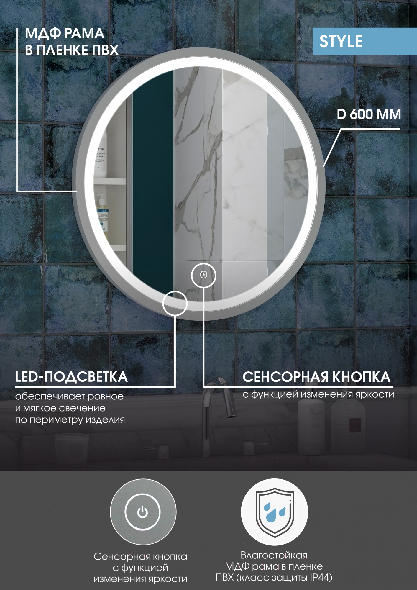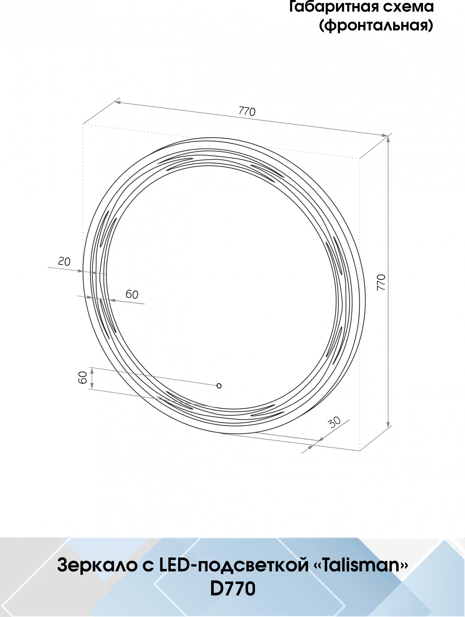 Зеркало Континент Talisman Led D77; Тип: зеркало; Ширина: 77 см; Высота: 77 см; Цвет: белый; Глубина: 5 см; Багет: нет