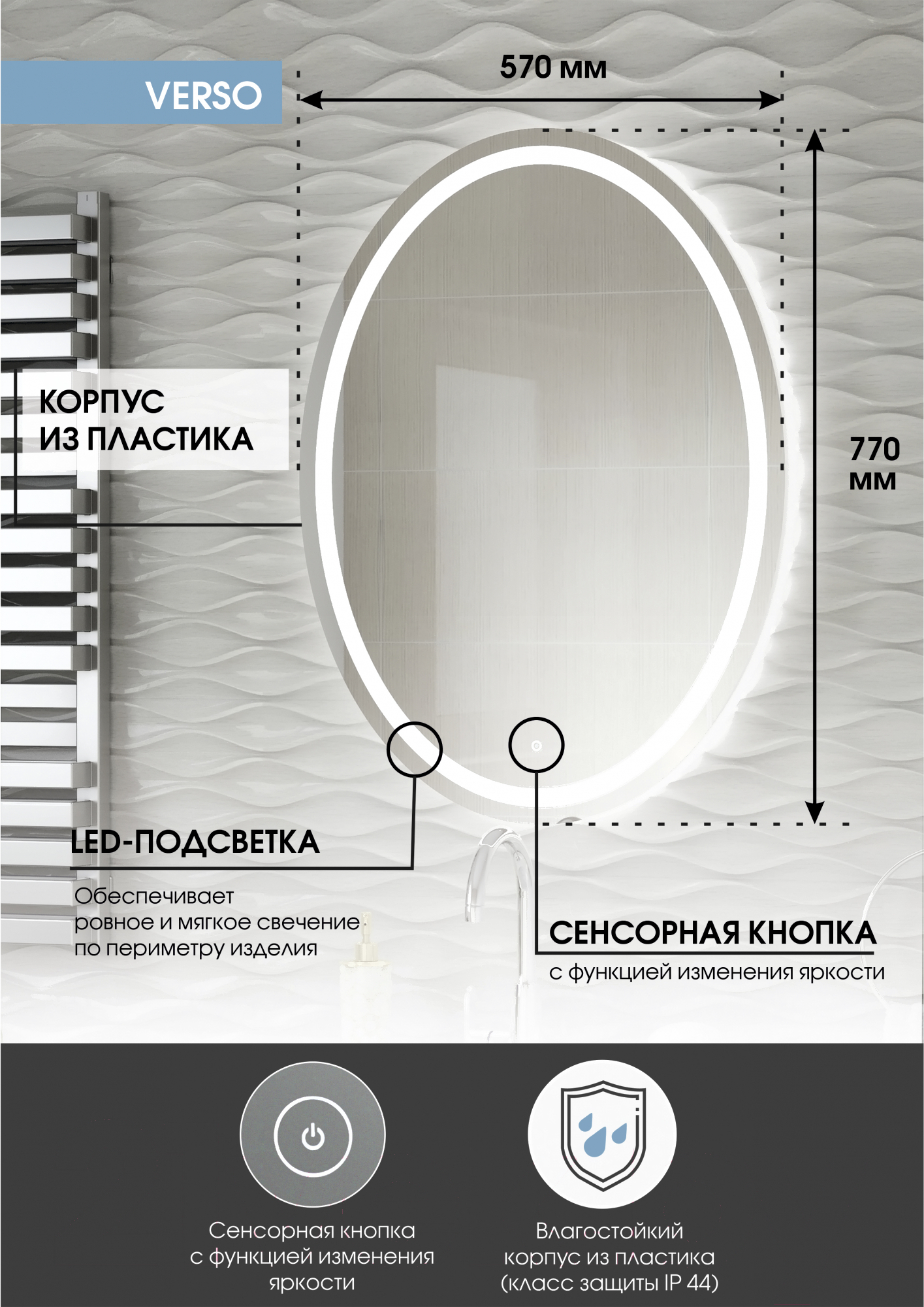 Зеркало Континент Verso Led 57x77; Тип: зеркало; Ширина: 57 см; Высота: 77 см