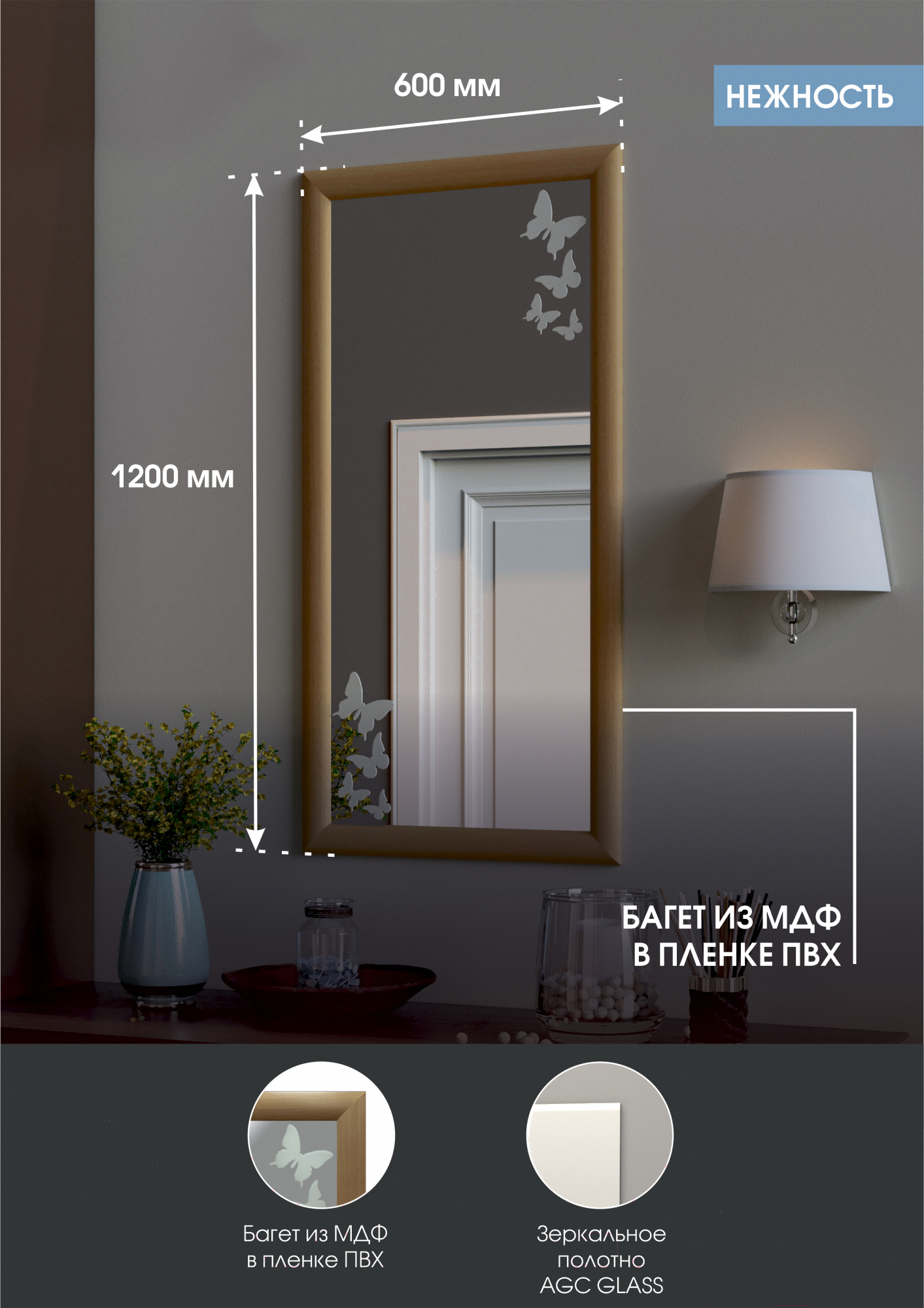 Зеркало Континент Нежность 60x120 (бук); Тип: зеркало; Ширина: 60 см; Высота: 120 см; Цвет: дерево светлых тонов, рисунок; Багет: прямой