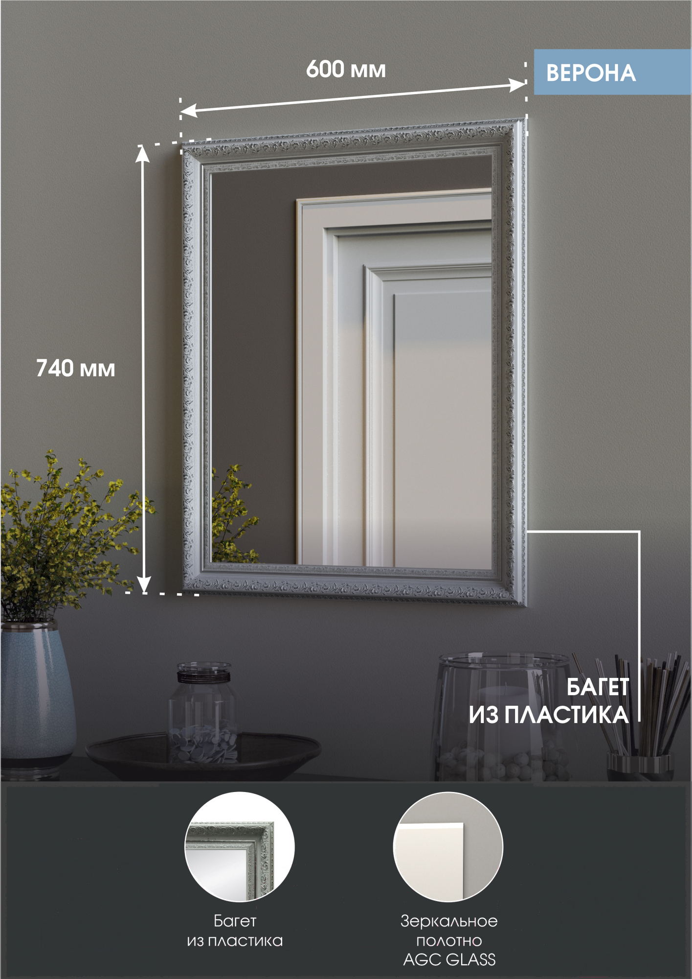 Зеркало Континент Верона 60x74 (белый); Тип: зеркало; Ширина: 60 см; Высота: 74 см; Цвет: белый; Багет: резной