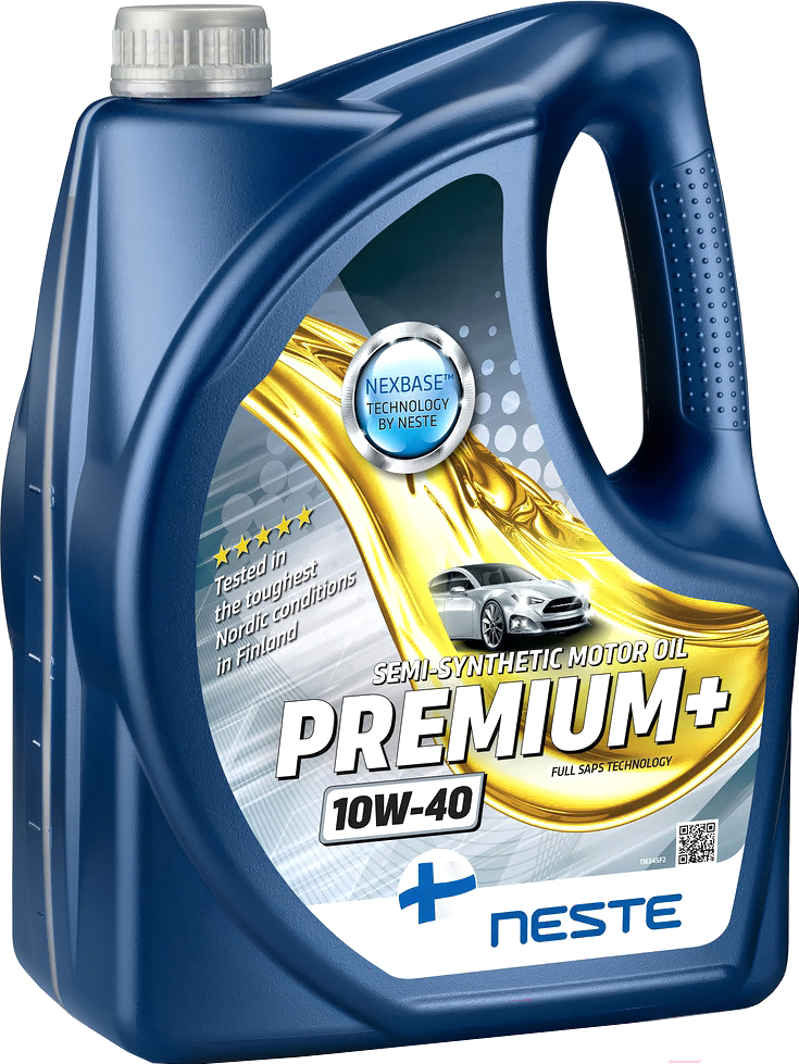 Моторное масло Neste Premium+ 10W40 / 116345 (4л); Состав масла: полусинтетическое; Вязкость: 10W-40; Тип двигателя: бензиновый, дизельный, газовый; Объём: 4 л