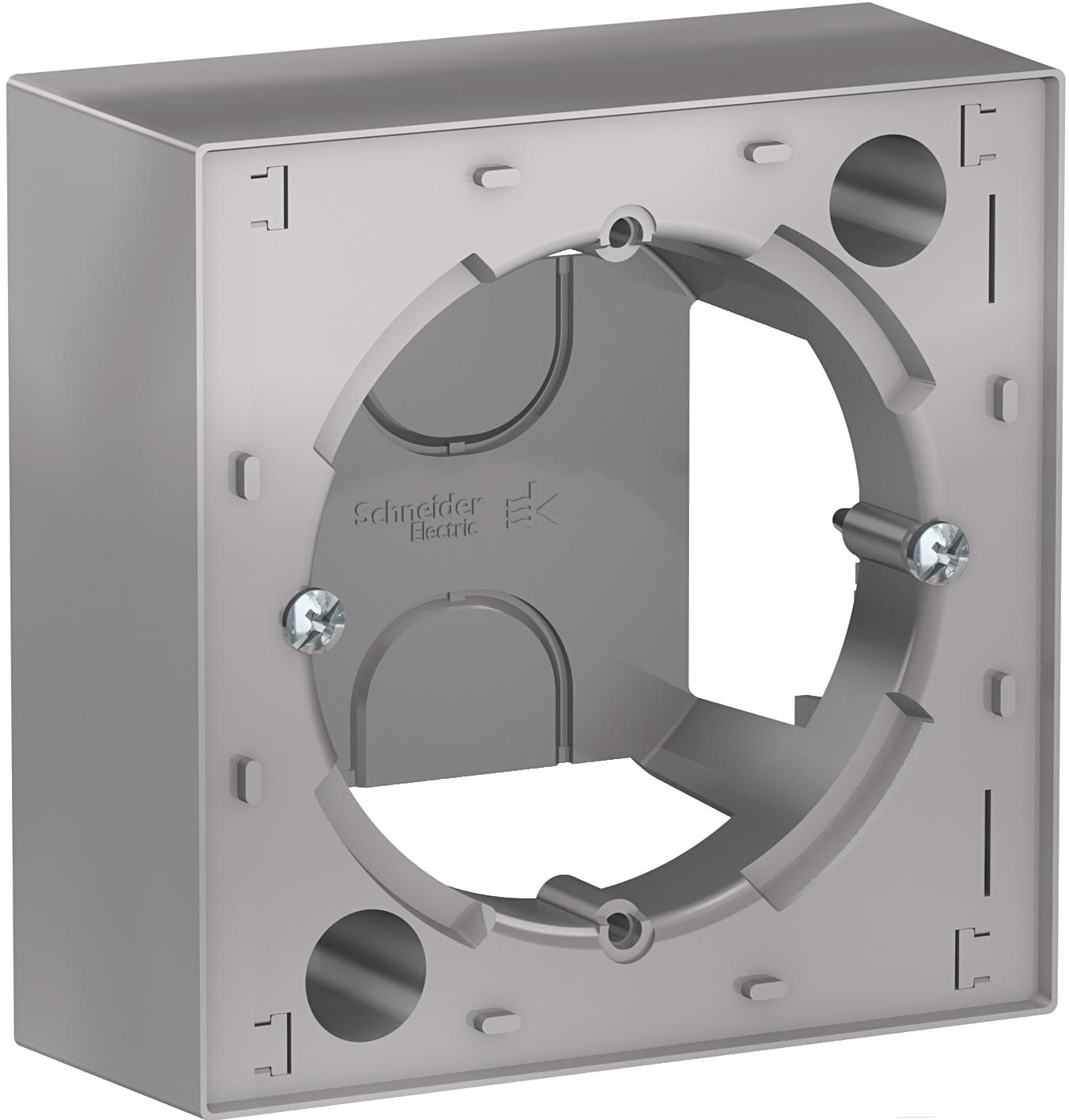 Коробка открытого монтажа Schneider Electric AtlasDesign ATN000300; Способ монтажа: наружный; Тип рамки: 1 пост; Коллекция: AtlasDesign (Schneider Electric); Поверхность: глянцевая; Материал: ABS-пластик; Класс пылевлагозащиты: IP20