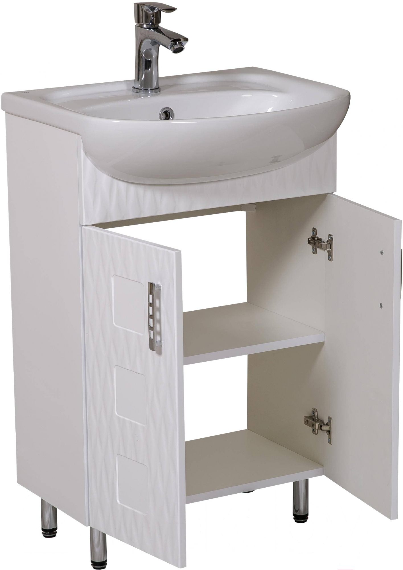 Тумба с умывальником Аква Родос Ассоль 55 / ОР0000191; Материал (каркаса): ЛДСП; Высота: 85 см; Ширина: 54.5 см; Глубина: 44 см; Установка: напольная; Умывальник в комплекте: есть