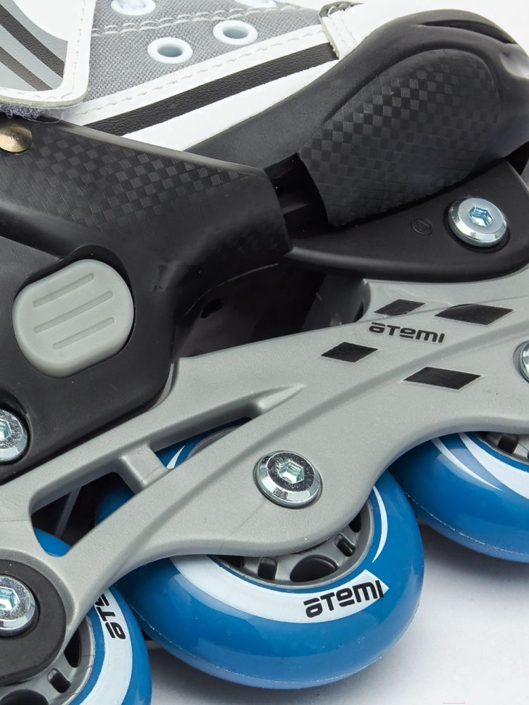 Роликовые коньки Atemi AJIS-1601 Abec7 (р-р 27-30, серый); Тип: роликовые коньки; Подшипники: ABEC-7; Раздвижные: есть; Цвет: серый; Размер (RU): 27;30 RU; Защита в комплекте: нет; Материал колес: полиуретан; Диаметр колес: 64 мм