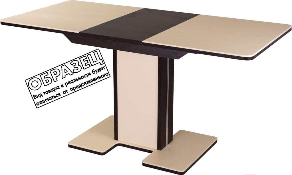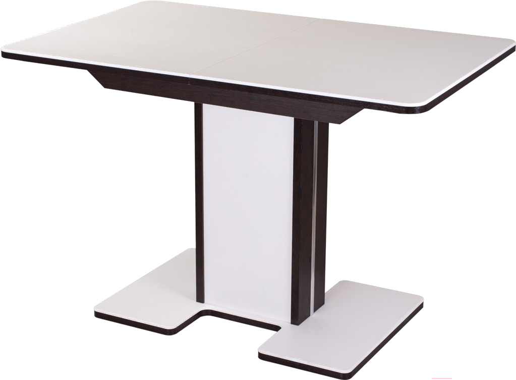 Обеденный стол Домотека Румба ПР 70x110-147 (белый/венге/05); Тип стола: обеденный стол; Материал опор: МДФ; Ширина: 70 см; Длина: 110 см; Высота: 75 см; Материал столешницы: ЛДСП, камень искусственный; Конструкция: раздвижной; Длина в разложенном состоянии: 147 см; Стиль: нейтральный