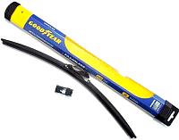 Щетка стеклоочистителя Goodyear GY000428; Тип щетки: бескаркасная; Вид крепления: Hook (крючок), Push Button (кнопка), 19 мм, Side Pin (боковой штырь), Push Button (кнопка), 16 мм; Длина щетки: 700 мм; Место крепления: спереди