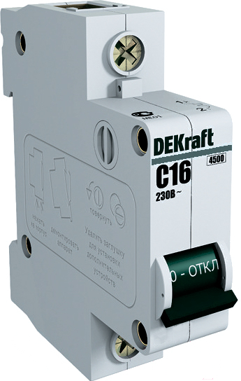 Выключатель автоматический Schneider Electric DEKraft 11055DEK; Номинальный ток: 20 A; Характеристика срабатывания (кривая тока): C; Номин. отключающая способность: 4.5 кА; Количество полюсов: 1