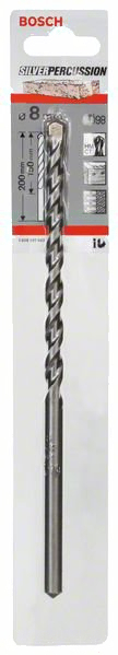 Сверло Bosch 2.608.597.682; Обрабатываемый материал: бетон; Вид хвостовика: цилиндрический; Диаметр рабочий (мм): 8; Длина общая (мм): 200; Длина режущей части (мм): 150
