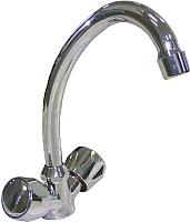 Смеситель Снабстройсервис См-МДЦБА/3 (с гайкой); Материал: латунь; Назначение: для кухонной мойки; Монтаж: на раковину или столешницу; Механизм: двухзахватный; Поворотный излив: есть