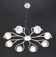 Люстра Евросвет Camomile 70089/8 (бело-серебристый); Количество ламп: 8; Материал каркаса: металл; Материал плафона/абажура: стекло; Высота: 23;85 см; Длина: 77 см; Ширина: 77 см