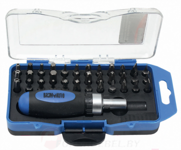 Отвертка BaumAuto BM-30311236; Количество в наборе: 36 шт; Вид отвертки: под биты; Вид наконечника: прямой шлиц Slotted (SL), крестовой Philips (PH), крестовой с насечками Pozidriv (PZ), звездочкой Torx (T), звездочкой с отверстием Tamper Torx (TT)