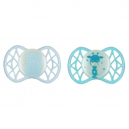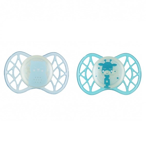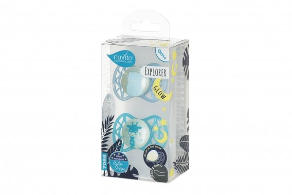 Пустышка ортодонтическая Nuvita NV7066 Air55 Explorer 0m+ 2шт. светящаяся в темноте (мишка, жираф) (NV7066GM)