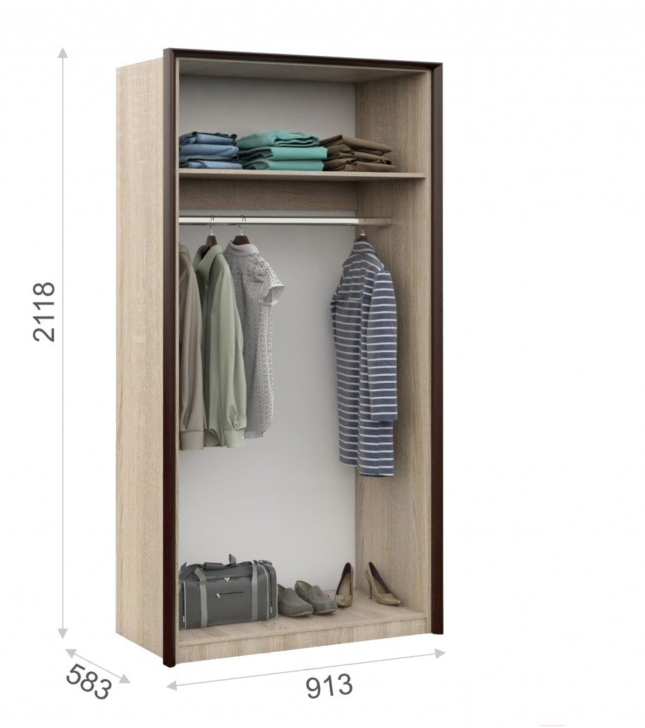 Шкаф Империал Эшли 2-х дверный (венге/дуб сонома); Назначение: для жилой комнаты, для спальни; Ширина: 91.3 см; Материал фасада: ЛДСП; Материал каркаса: ЛДСП; Наполнение: полки, штанга; Высота: 211.8 см; Глубина: 58.3 см