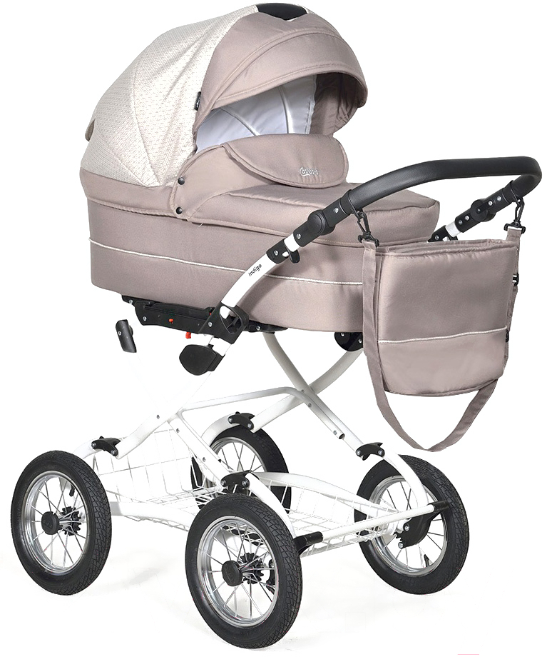 Детская универсальная коляска INDIGO Barbara 19 Classic 2 в 1 (Ba 23, бежевый/бежевый узор); Тип коляски: детская универсальная коляска; Механизм складывания: книжка; Конструкция: модульная 2-в-1 (люлька/прогулочная); Материал рамы: алюминий; Шины: надувные; Смена положения ребенка: есть, смена положения модуля; Дополнительные элементы: сумка, чехол для ног; Вес: 14.7 кг