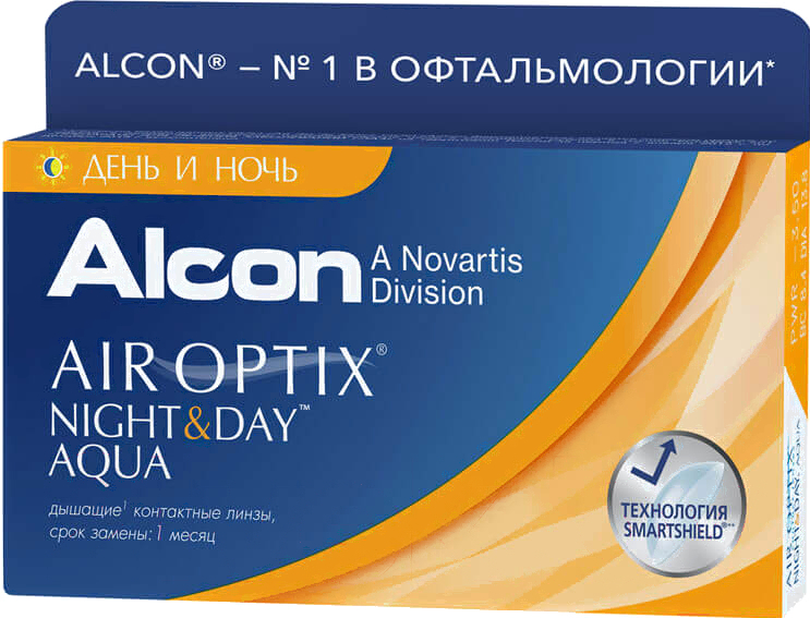 Контактная линза Air Optix Night&Day Sph+4.00 R8.6 D13.8; Материал линзы: силикон-гидрогель (дышащие); Оптическая сила (D): 4.00; Режим ношения: непрерывный; Срок ношения: 1 месяц; Цветные линзы: нет
