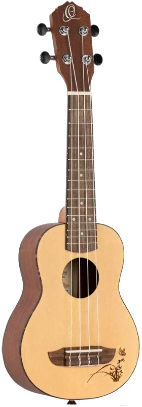 Укулеле Ortega RU5-SO; Материал верхней деки: ель; Материал задней стенки и обечайки: махагони; Материал грифа: махагони; Количество ладов: 15; Мензура: 13.8 "