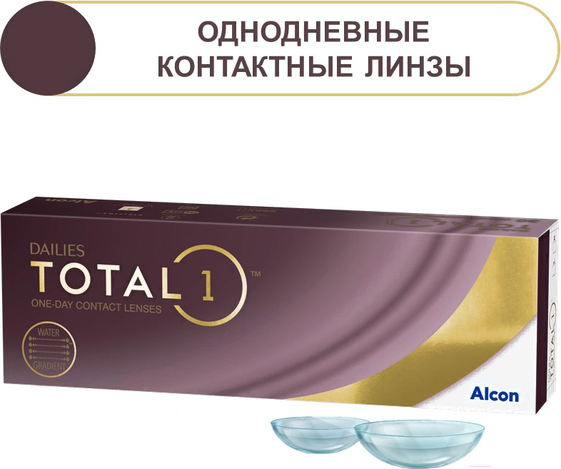 Контактная линза Dailies Total 1 Sph-0.75 R8.5 D14.1; Материал линзы: силикон-гидрогель (дышащие); Оптическая сила (D): -0.75; Режим ношения: дневной; Срок ношения: 1 день; Цветные линзы: нет