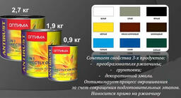 Эмаль Оптима 3 в 1 по ржавчине (900г, белый); Назначение: на ржавчину; Тип работ: внутренние, наружные; Вид окрашиваемого материала: металл, дерево, штукатурка, кирпич; Цвет: белый; Название оттенка: белый