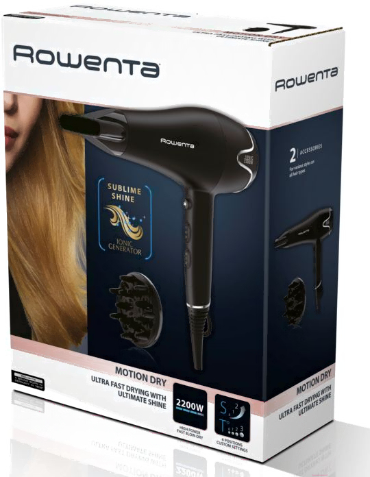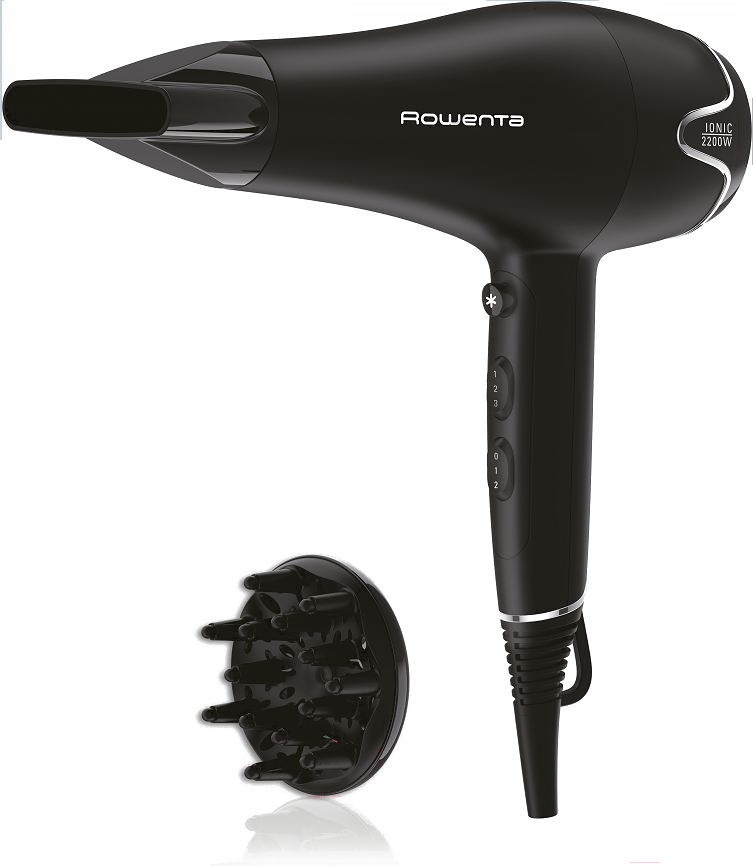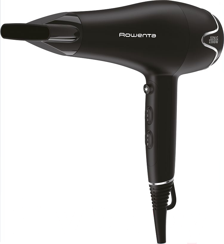 Фен Rowenta CV5735F0; Мощность: 2200 Вт; Количество режимов: 6; Независимая регулировка: есть; Подача холодного воздуха: есть; Функция ионизации: есть; Насадки: концентратор, диффузор