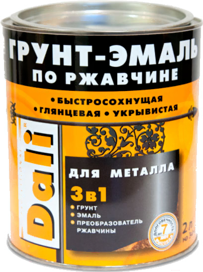 Эмаль DALI По ржавчине 3 в 1 (2л, ультрамарин); Назначение: на ржавчину, для металлических изделий; Тип работ: внутренние, наружные; Вид окрашиваемого материала: металл; Цвет: синий; Степень глянца: глянцевая; Объем: 2 л; Свойства: атмосферостойкая, высокая адгезия к основанию, высокопрочная, высокоукрывистая; Название оттенка: ультрамарин