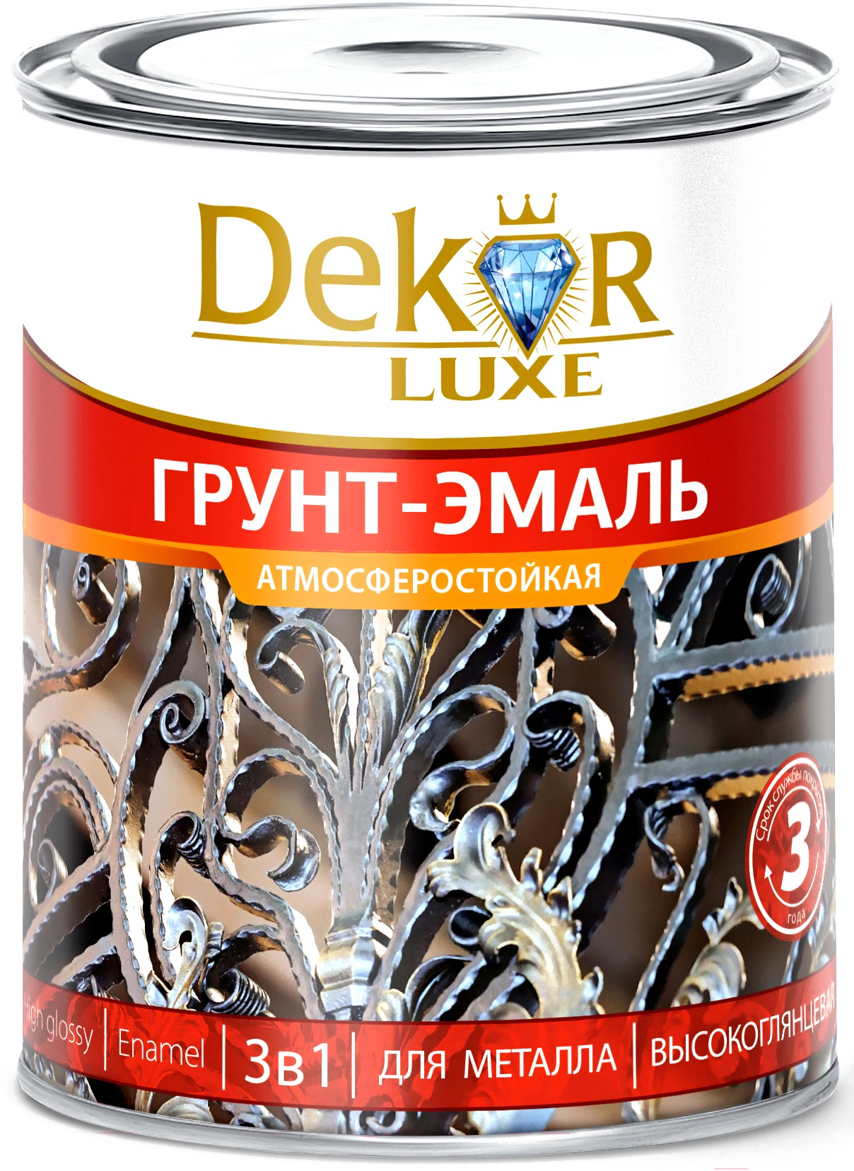 Эмаль Dekor 3 в 1 алкидная (900г, желтый); Назначение: на ржавчину, для металлических изделий, для деревянных изделий; Тип работ: внутренние, наружные; Вид окрашиваемого материала: металл, дерево; Цвет: желтый; Степень глянца: глянцевая; Свойства: атмосферостойкая, быстросохнущая, водостойкая, грязеотталкивающая