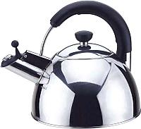 Чайник со свистком Viking RWK053; Тип: чайник со свистком; Основной материал: металл; Материал ручки: бакелит; Цвет: черный, нержавеющая сталь; Объем: 2.5 л; Использование на плите: да, на газовой, на электрической